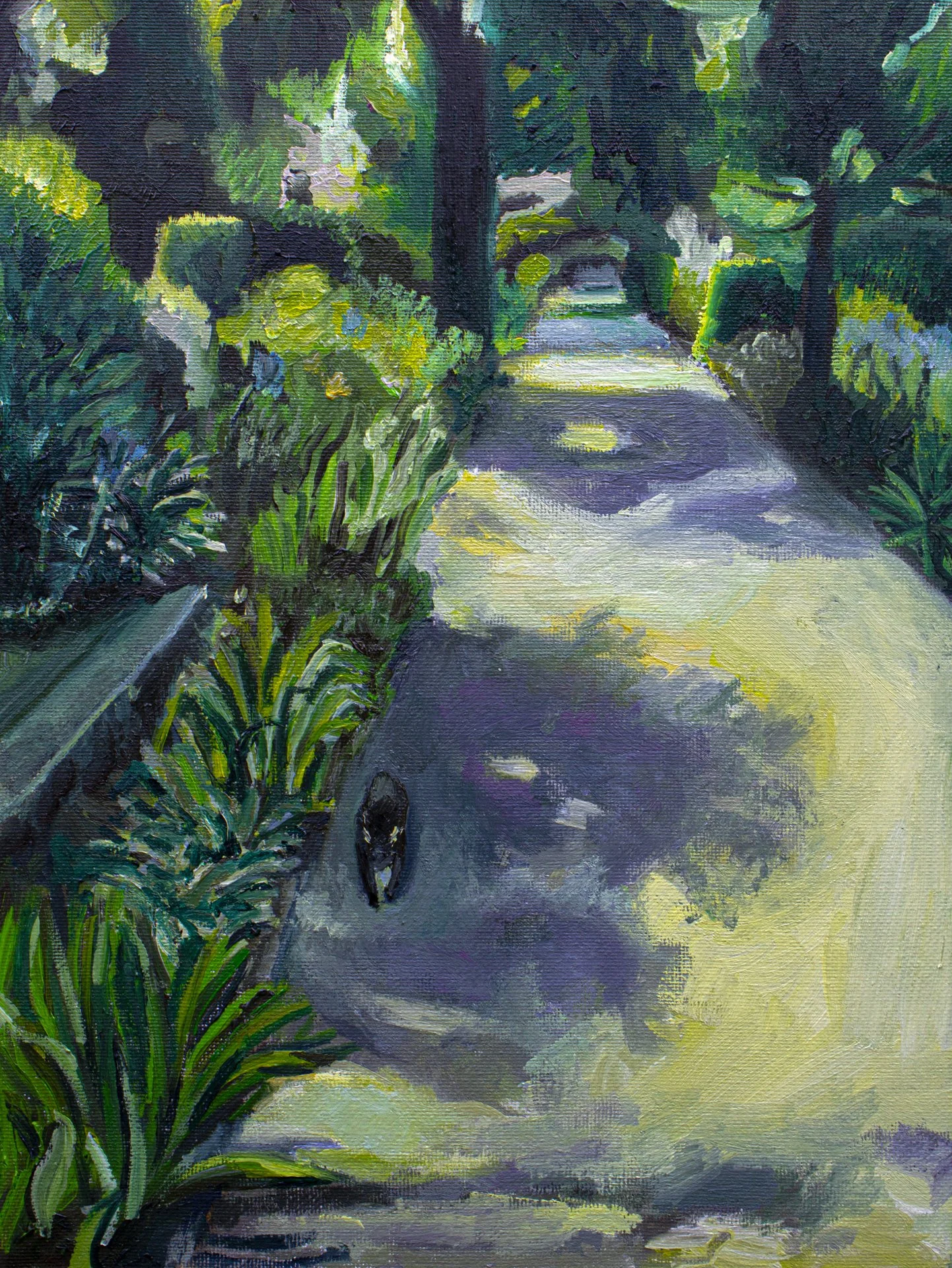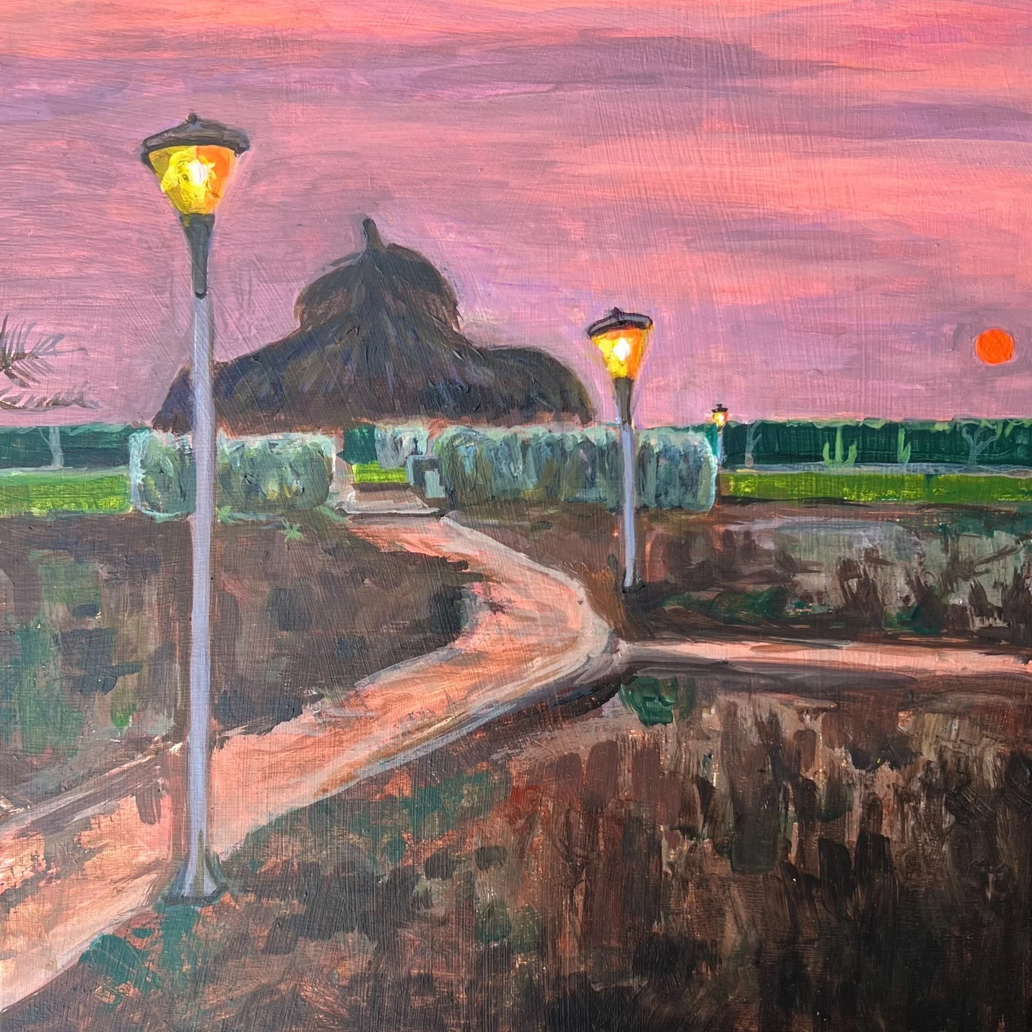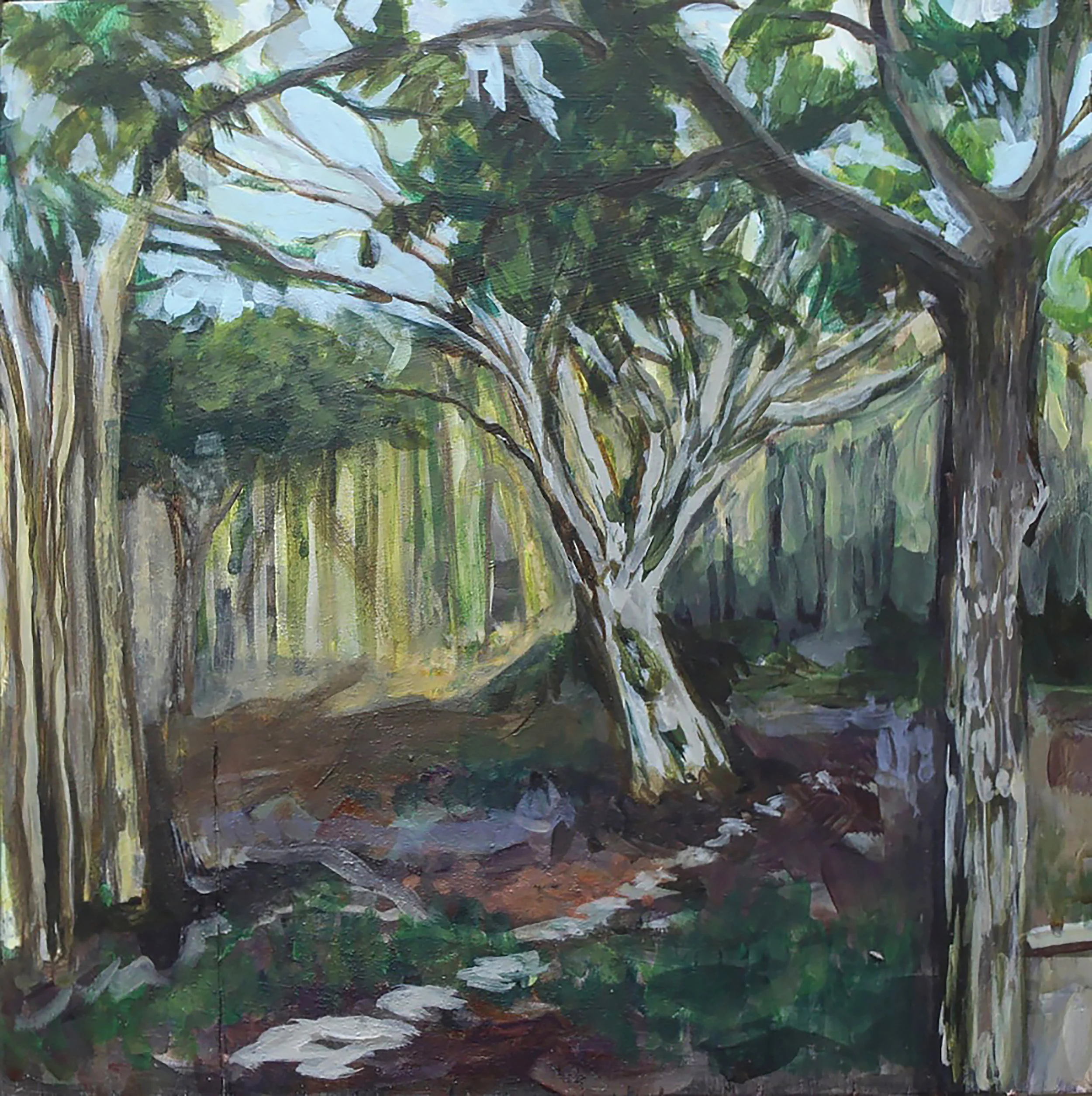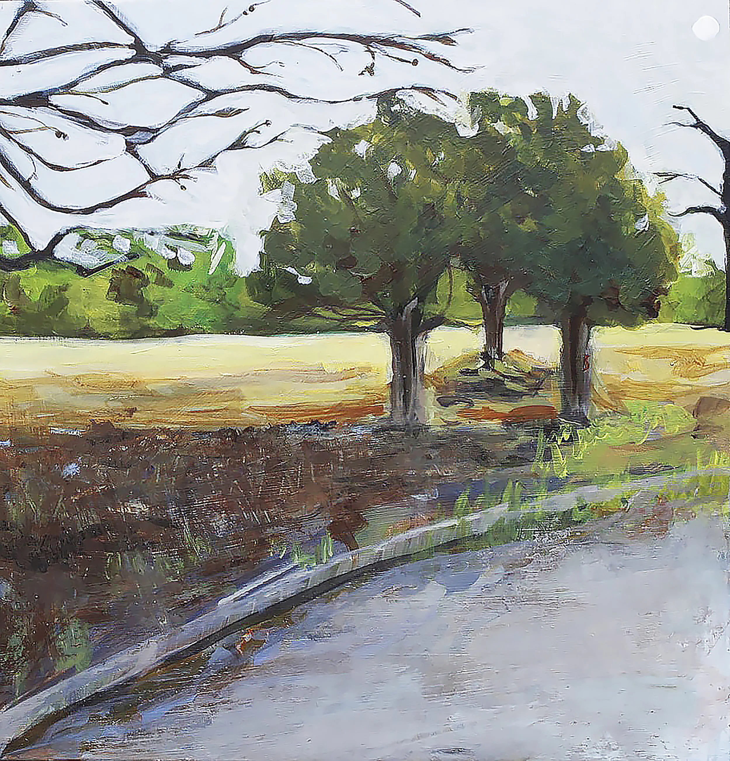 Is a series of 11x11 acrylic paintings on wood panel called Fragments of My Surroundings. The works elicit a deep sense of nostalgia for spaces that are devoid of human presence, where nature takes center stage. These scenes emphasize the vital role of nature in a world increasingly defined by pollution and a growing disconnection from the natural environment.